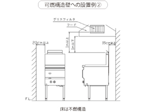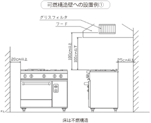 ガス機器を設置する際は、周囲の壁・柱・天井・床が不燃構造であることを確認のうえ、設置してください。万一、可燃構造壁へ設置する場合は下記の点を必ずご確認・順守ください。